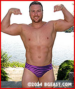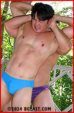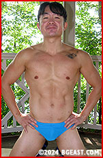 It's been a few years since Austin Cooper has been in BGE action. The fan-favorite golden boy is all man, now, sporting serious beef and a scruffy beard. He promises to go easy on hunky newbie Sean Chen, as the rookie shyly admits he's had little wrestling experience. Sean is all nerves and earnestness debuting against one of the most legendary wrestlers on the roster, rightfully proud of his rock hard abs and thick, meaty pecs. They agree to a "friendly match," and spar happily, even when Sean accidentally slams Austin's back into the sharp edge of a gazebo post; Austin is wary, but willing to forgive the clumsy kid.