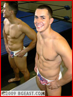 At long last, the match everyone's been clamoring for! Two of BG East's sexiest and biggest stars, at long last, facing off in the ring! In one corner, there's Sexy Alexi, the big Russian stud with a so-so record and a chip on his shoulder the size of Siberia. Throughout his storied career, Alexi has never really managed to put his skills, his strength and his passion to win all together to pull out a win over one of the big names on the roster. He's blamed this on The Boss' treachery, but even he is aware that this explanation has started to sound like a whining excuse. Recently naturalized, the big stud proudly puts on a pair of trunks with the US flag on them before heading barefoot to the ring for his Appointment With Destiny. A lot is riding on this match for Alexi: this could be his final chance to prove himself once and for all as the wrestler he always dreamed of being.
