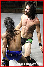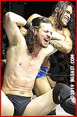Ripped longhair Trevor might want everyone to think he's above needing the crowd's approval, but try as he might the heel can't hide how it gets under his skin to see the new prettyboy upstaging him so quickly. Of course, this only drives him further in his quest to dismantle the fresh-faced newbie in front of all his adoring fans.
