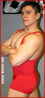Both singlet studs launch into each other with raw ferocity. It's a rough and tumble mat battle that pits Anton's size and strength against Forrest's experience and stubbornness. The redheaded upperclassman is fast, lassoing single leg take downs at will. Keeping the mountain of muscle down, however, proves quite a bit more of a challenge. Anton repeatedly pumps his muscles, busts out of Forrest's holds, and powers on top to crush him hard. The rookie's padlocked full nelson cranks on Forrest's neck and rips his shoulders apart. When Anton's rib cracking kneeling bearhug doesn't quite scratch the rookie's itch to make the redheaded smartass suffer, he drags him up and lifts him off his feet, to really crush out every last ounce of air from Forrest's burning lungs.