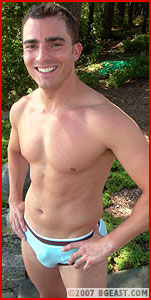 Sandro remains silent, slipping off his shorts to reveal a pair of briefs that only get sexier as he begins to sweat. They shake hands and start circling each other. Alexi is bigger, but despite his victories in the earlier matches, they've taken a toll on him. The spring in his step is a tad slower than earlier'and Sandro is no pushover. He's strong, determined, and not about to lose to the company 'doormat'. They lock up in an impressive display of muscle mat wrestling, neither willing to let the other hold an advantage for long.