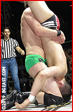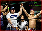 The purple-haired powerhouse proves that new muscle isn't just for show, both breaking Ethan's hold on him time and again, and returning with surprise reversals and a two-fisted beating of his own for the tough guy. Anyone who's seen Ethan in action knows he can take some punishment, but even he's looking worse for wear as the action spills out of the ring and across the front row. With the belt on the line, both men are giving it their all. Can Ethan wring a defeat out of Tiko's resilient body with the right hold, or will we see an underdog crowned champion tonight? The ending is a shocker for sure, with more than one surprise in store for both winner and loser in this title bout.
