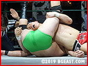 Axel seeks to claim the Lightweight championship with a glute-exposing, trunk-pulling rollup