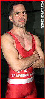 You may recognize Mason Broder from video downloads of his wrestling matches in Europe and America. In Spain, he fights wrestlers from all over. But like so many all over the world, he set his sights on BG East, whose reputation for producing top-notch combat entertainment is second to none. His knowledge of English is limited, but wrestling is its own kind of language and culture. Of course, being booked against BGE's Jonny Firestorm might require a short Spanish-English phrase book of useful terms like "I submit," "I quit," and "Please don't kill me." Before this highly anticipated match, Mason looks confident, but not cocky. Slim, soft-spoken, incredibly handsome, the Spaniard has flown 4,692 miles to stand face to face with our Jonny in the BGE ring in a form-fitting singlet that glows with taught muscles. If you're one of Mason's fans, keep your fingers crossed.