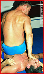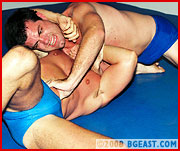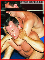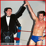 Ian Nesbitt, stunning in a full dress kilt, introduces Canadian Jeff for his match vs nasty Chip. In this all-out submission shoot style match, Jeff quickly finds himself in trouble, and after Chip chokes and armbars him in humiliating submissions, he strikes back against the cocky heel. His humpy butt pinning Chip's face inspires one of Chip's famous ballgrabs. Jeff responds in kind. Pec pounding, tight headscissors, ball-grabbing, tit-torture, gut-claws and more in this multiple submission no-holds-barred punishfest! Major mat mashing match!