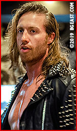 It's youth vs. experience in this penultimate match of the night. Cody Blayde is hardly inexperienced, but the fact remains he's a relative newcomer to the wrestling scene, especially compared to his opponent this evening. Cody has come far in his early years in the business, his hard-earned physique, skill, and brightly colored hair and gear a testament to his drive to be the next big thing, but to get that far this small town boy trying to make a splash in the big city will have to prove his worth against a big city man with many times his experience.