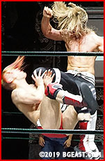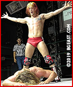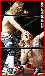 Cody Blayde shows plenty of heart in this match, rising to the challenge even as he's battered and beaten by a man he was outmatched against from the start. He fights on, clinging to one ray of hope, Bryan's overconfidence. With his tactics taking their toll on the long-haired kid, Idol is slow to capitalize on his advantages, so certain he has this match in the bag. Cody repeatedly fights back from a brutal assault, but the big man doesn't take the hint, still assured he can put the small-timer away at his leisure.