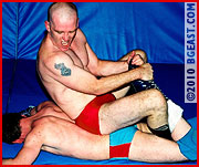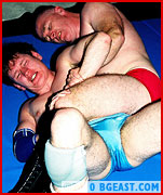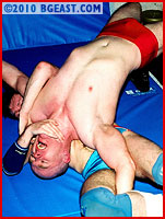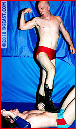 The big skinhead has his hands full with the talented and tricky Battleboy as they grapple, exchanging holds and mixing in the athletic classic British pro style action into their battle. Jim gets into torturing the younger and lighter young pro wrestler. More a scrapper who loves using sexy BG East Style holds to make his opponent quit, Jim keeps hurting and demanding submissions of his opponent.