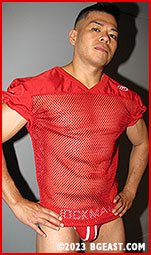 "You like that? You get off on that?" Mason teases Sunny, while keeping a straight face or trying to. He refers to Sunny's red and white team football gear, including shoulder pads, which he wears to wrestle Mason out by the lake. "What is this? You just going to make me strip each piece off you?" Mason chuckles dismissively and swats his teammate across the face, not hard, just enough to piss him off. It works. Sunny leans in to lock up. Both lose balance and fall on the mat and roll, clutching each other. Sunny turns onto his stomach with Mason riding his back. "So, uh, this is embarrassing," Mason says, clinging to the guy, "you're going to have to remind me of your name now." "Fuck you," Sunny replies. "I don't think that's your name," says Mason, tightening his grip on Sunny's jawline. He complains that, as team captain, he can't remember the names of "every new recruit who fucks up."