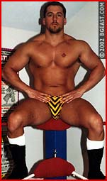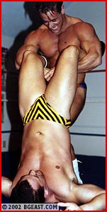 Randy's ripped to shreds, a gorgeous ultrahunk. Beefier Hal packs a lot of power & pouch. These ringstuds are stunning to watch. Hal suffers long bearhugs & submits to a backbreaker, but payback's a bitch. Randy's rock-hard pecs get pounded, stretched, clawed, punched 'til he can take no more. The camel/double pec claw will have you screaming too! Final fall is hunkbash heaven. Super-suffering Canadian hunkmeat!