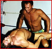 The earnest Corporal couldn't even make it all the way into the ring before hot heel Dave rope-jocked him in the balls and then wailed on him while he was caught up on the ropes. Once Cpl. JD finally makes it into the ring ' the hard way 'Dave repeatedly puts the boots to him. Arrogant and tough, Dave is one of the sexiest new heels in our pantheon of punishing tough guys. But service in the military toughens a guy and Dave finds out that Cpl. JD can be a very demanding and vocal drill instructor. On the other hand, and to the other extreme, when he's on the receiving end of Dave's battering, the soldier boy's suffering, crawling and grovelling is as sensual and sexy as it gets. A very hot knock-out sleeper is followed by a muscle-popping schoolboy pin. A terrific finale to another Hunkbash winner!