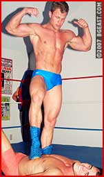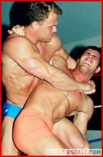 Stunning boy-next-door vs cocky stud. Which hunk will take the beating? Mikey attacks from the beginning but Jeff's no pushover. The stunning vascularity on these guys is beauty to behold! And what butts! Gut punishment on washboard guts! Stomps, endless corner beatings! A bow & arrow submission will have you screaming too! One of Mikey's best bouts yet. Both hard muscleboys get battered, then come back for more! One of the finest muscleboy battles, and as always one hunk gets totally bashed! A superhot debut for Jeff! Hunkbash 5: muscled ultrahunks bashed, beaten and battered by their betters! from HUNKBASH 5: