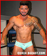 Prepare yourselves. Luis is new and he is hot! He's hungry like a lot of young wannabe ring wrestlers. His caramel-colored and robust thighs are the first things we see. The camera glides up his meaty torso, smooth as silk, the awesome pulchritude and youthful shimmer of young manhood. And what an ass! Kirk stomps on the ring apron, announcing his entrance. "Got another newcomer here?" says Kirk, his eyes fixed on Otero's curves. "Look at me," boasts Luis. "You like?" "You look pretty good," Kirk admits, his eyes running up and down the rookie's body. "You know anything about wrestling?" Luis flexes his biceps. He and Kirk flash their physiques and study their curves in the mirror.