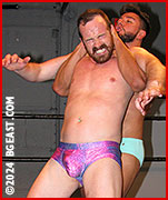 Luis delivers a spectacular debut, and Kirk decisively confirms his creds as a bad guy in every universe. Classic maneuvers again prove their powers to amaze and intoxicate. Donahue, of course, is a master of the destructive arts. His days as a pale, reticent, and gangling jobber are far far behind him now. This match resurrects the classic ring battles of early BG East, but with new faces, harder whacks, and more glistening sweat and painful grunts.