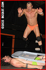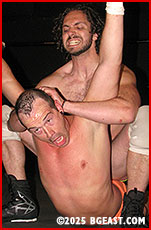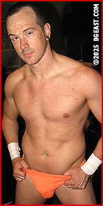 Kirk Donahue takes us behind the mirror of his recent alter ego, to the special training facility where he has only ever been the heel superstar, Evil Kirk. But Stevie Suave has an ego that is itching to win big after several attempts to establish himself as the new heel on the roster, and Kirk is not too pleased when Suave acts like he's never heard of either of Kirk's illustrious, fan fave bulge personalities. "I definitely haven't heard of you," says the loudmouth giant who towers over his opponents at 6 foot 2.