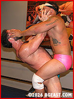Size does matter in wrestling, and Monstah Mike is a prime example of that. His thickly muscled body, strong and powerful, is awe-inspiring, whether he is in a bulking or cutting phase. Thick powerful legs, enormous arms and pecs, and that back! But Danny Del Toro is not someone that intimidates easily, and he fears no behemoths in the ring. He's taken down and embarrassed much bigger men than Mike - skills and training and a quick, devious mind are the weapons he brings to the table.