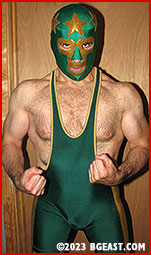 Seon knows how to wrestle and his body is super-conditioned to take pain - but the Menace has an arsenal and his body is just as conditioned to give out pain. Nothing pushes the Menace like the whimpers and cries of a falling, failing foe. He feeds off their pain, it drives him to switch to even nastier holds, to crueler, still more painful variations ... Yet tough Seon always seems to bounce back, ready for more. And Menace always has more to give - more menacing brutality, more punches and forearm smashes, chokes and scissors and nelsons - and that beautiful package concealed within Seon's trunks is sometimes just too tempting to not grab hold of! Why not kick it? Why not stand on it? You can almost see the pleasure in Menace's eyes as he twists and pounds Seon again and again. Seon's grunts, groans and cries go straight to the pleasure center behind that mask.