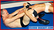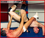 Vicious targets Jeff's ripped chest, and who wouldn't? Jeff's shapely beefy pecs and perfect nipples make for a very inviting target for fists, claws, boots and tongue! And the Vicious pec punishment is extensive and comprehensive: claws, knees, fists & forearms. Gutpounding, ball-grabbing, ball-bashing, face-sitting: the skin goes all out, pressing his big boot in Jeff's basket, hanging him upside down in the corner, squeezing him in hot bearhugs & horny head scissors. But all that is prologue and prelude. The sexy skinhead slowly but surely seduces the hot Canadian stud. Each hold gets progressively more suggestive, in this finish to a stunning series of brutal wrestling demolitions!