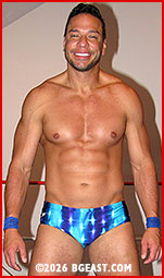 The contrasts between Santiago and Sir Dark are striking. Both rookies showed up with extensive underground wrestling experience, but the similarity ends there. Santiago, in just his second BG East match, is a stunning specimen of physical fitness. His signature 8-pack abs and sculpted pecs look like armor on his tall, perfectly proportioned frame. He's handsome, like some dazzlingly pretty fairy tale prince, but with the cocky edge of an erotic warrior hungry to put all of those gorgeous muscles to work dominating an outmatched opponent. Santiago sports the perpetual smirk of someone accustomed to turning heads and getting his way.