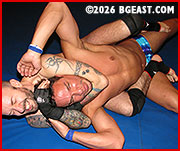 Sir Dark levels the playing field and begins isolating Santiago's muscle advantage with a deep double pec claw
