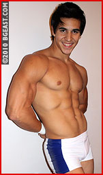 The fans have spoken, and the response is overwhelming: "breathtakingly beautiful," "a Greek God" and "a dream come true" are just a few of the phrases fans have used to describe Rio in emails and on the fan forums. Prolific poster Tad Brown perhaps summarized it best, rating Rio a "bonafide superstar" before waxing poetic about his "world class pecs" which reminded Tad of some of his most favorite BGEast scenes: blond bodybuilder Troy Baker's meaty pecs "shaking and jiggling" as Vinny Trevino pounded him in the corner on Tag Team Torture 3; Dom Zaccaro stomping ultrahunk Brad Rochelle's chest mercilessly on Demolition 3. But while Rio's phenomenal physique has made him a fan favorite, it also makes him a target for every other wrestler on roster looking to ride the wave of attention that comes with pummeling a prettyboy beyond all sense of reason.