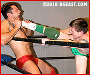 Landon finds himself trapped, choked, and ridden in the ropes by his bigger ex-partner