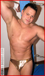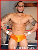 Newcomer Badass Borne is built like a brick shithouse - thick strong legs, massive arms and shoulders, and the package tucked inside those tight orange trunks is one of the most impressive to appear before the cameras of BGEast in a long, long time! The tattooed tough pauses in the doorway of The Arena to just take in the sight for a few precious moments, psyching himself up for his big ring debut. It's a moment he's been anticipating for as long as he can remember. A dream finally about to come true.