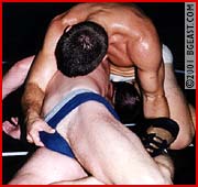 Here's a totally intense, evenly-matched no-holds-barred, aggressive mat war - proving once again that BG East offers more wrestling variety than any other company - as well as the BEST wrestlers on the scene today! Colin's figure 4 head scissors leaves the bigger stud stunned and breathless. Bud will wring and twist Colin into a pretzel for this indignity! With their sweat-drenched singlets peeled off, we get undageared leg spreads, headlocks, a brutally arched camel clutch and butt-humping and totally painful submissions. These holds are not gently applied - no way! They are CRANKED on and cranked on HARD. Both studs shine in a hard-fought battle with Bud dripping in sweat and Colin's hard-on leaking right through his sweat and sex-soaked undagear. This is ROUGH and this is sexy! And if you like watching pain that is palpable and punishing - whoa baby - this is for you!