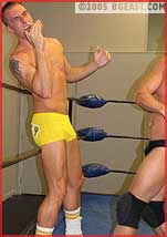 When Lukas saw Cole?s name pop-up in one of the on-line wrestling chat rooms his heart began to race. He had spent untold hours ?with? Cole watching him take apart Tarzan Tyler Reese on his favorite BG match. He decided to take a chance, sent a photo, then typed in Cole?s instant message box: ?You have mail. And PS: I WANT TO FIGHT YOU!? Cole took one look at the photo of the tall, ripped, handsome and obviously hung 22 year old, and typed back ?You?re on, punk?. Lukas gulped. Sometimes you get what you ask for. Cole continued, ?The BG guys will love you. To me you?re just a pretty piece of meat. If you got the balls, meet me at the BG East taping in Florida.? The stage was set. The tension is palpable as Lukas stretches out his beautifully proportioned muscularity and gorgeous butt before stepping into the ring for his dream-cum-true fantasy match. He was a rookie for sure, with almost no experience. But he felt he was Cole?s equal ? at least on paper. He was taller and heavier and at least as strong as Cole, but unlike Cole, he had yet to be tested. But as Lukas stepped through those ropes and Cole shook his head and muttered, ?another fucking pretty boy?, the young rookie knew he would be tested, and tested as never before! A point made perfectly clear when backed into the ropes after the initial lock-up, Cole baptizes the rookie with a stiff smack across the face!