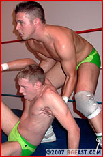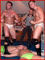 The match begins, and Jonny does his best to keep the wrestlers honest as the battle rages back and forth, not and easy take with 4 very experienced athletes. And Dick and Scott are both adept at hiding their shortcuts from any ref?let alone an inexperienced one. They keep methodically working their earnest foes down, weakening them with cheap shots when Jonny is looking the other way!