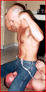 Punch after punch'and he drops to his hands and knees'and the mask comes off again. Bored with the abs, it's crotch time again as Kid Vicious systematically tortures and wears down his hapless victim. A nasty crotch to face headscissors has Chad moaning as Kid tries to crack his head like an eggshell'and nothing inspires the Vicious one more than a foe who requires more pain and punishment to admit surrender. Vicious actually prefers it that way, drawing more strength and energy from his victims, as well as a visceral arousal, kind of like a vampire drawing sustenance from the blood of the innocent.