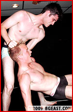 Christian's triumph is short-lived, however, as Blaine decides to take a page out of the playbook that beat him down so many times before! A choke and a ball grab drives Christian back into the wall where Blaine slowly but deliberately grinds against him, sweaty sexy bodies pressed together as their lips inexorably come together in a passionate kiss!
