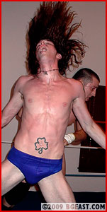 Lanny's long hair goes flying as Rico punishes the rookie's back