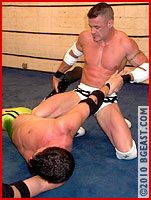 You can bet the action just gets juicier and juicier from that point on. The final minute of this match satisfies on a primal level. Two tough and ruthless men dominate each other in turn, proving their stuff in sexy move after punishing move. But in the end, one man leaves the ring victorious, and the other man is left, out cold, in the center of the ring.