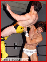 But there are few things as dangerous as a rampaging mastodon. With Diego admiring the belt he's about wrap around his rippled abs, Morgan drops the giant to his knees with a ball crushing low blow. "That was a cheap shot!" Diego gasps through gritted teeth, as if he can't quite believe the vicious dirty trick. Knowing Morgan's tunnel-vision commitment to become the nastiest heel in the stable, Diego had better become a believer fast!!