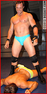 The brutal beating goes on as both spectacular bodies become slick with sweat, as their gear gets soaked from the struggle - the dirty Dick methodically and patiently puts his pitiful patsy through the paces of pain, his agonized screams alternating with a surfeit of surrenders, as the Z-man gets a beating he - and no one else - will ever forget!