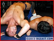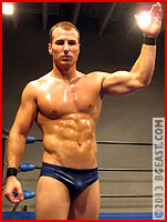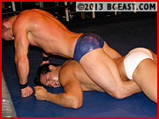 An unexpected turn of events gains Rio a legit win by pinfall, a blow to Austin's ego that only intensifies the violence. If at first Austin's talk of permanently crippling Rio sounded like so much hot air, now it's looking entirely possible. Even Rio's cringing third submission fails to satisfy a pissed-off Coop's bloodlust, and the battle well outlasts what should have been a final round. Rio fires back at Austin, raising the fight to a fever pitch right up to and including a white-knuckle finish that should give fans and armchair refs plenty to talk about. A spectacularly sexy, sweaty, magnificent muscle man match!