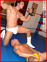 And just when you think it can't get any wilder, just when you think it can't get any rougher, just when you think that surely one of these hot hunks cannot possibly endure any more of the relentless torture and beatings being viciously dealt out by the other - there is suddenly yet another turn in the convoluted and gripping story being written here, in sweat and sinew and muscle and testosterone - with an overt subtext of two big bulging manhoods and massive egos put squarely on the line.