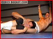 With years of experience on this relative newcomer to the ring, Rio shrewdly waits for an opening to take the steam out of mouthy Diaz and chop him down to size. The tension and animosity between these two escalate to a sweat-soaked, body-to-body finish, culminating when one of these wrestlers is knocked out in the center of the ring. You begged for this confrontation, and BG East made it happen. Lick it up - con brio!