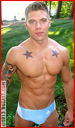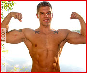 Keeping Kid K controlled is easier said than done, and with a lot of grunting, flexing and lubricated with a liberal coat of sweat, the veteran muscles out. When they climb to their feet, Pete grins mockingly, "I'm just toying with you, man." His pecs bounce eagerly. "Oh, fuck you, man!" the veteran snaps back angrily, flinging himself headlong into another scramble of sculpted muscle locked in combat. Pete is a quick study, and when it comes to getting underneath the skin of an opponent, two can play at that game!