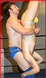 The jockstrapped babyface suffers and fades in his mentor's patented Kiss of Death sleeper