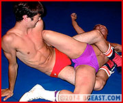 With a brutal series of brutal body slams, the boy to beat bashes the fight out of a shocked young hopeful, who can do nothing but watch his dreams of victory being crushed before his eyes. A dragon sleeper with a ball claw chaser drives the loser to the edge of endurance. Thongs get yanked, faces gets smothered, egos get crushed.