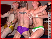 Mike gets a quick and hard lesson in how Jonny earned the name "Firestorm." No ref, no rules, no DQs ... this is exactly Jonny's kind of game! Eventually, to repay Jonny for his presumption and insults and check his out-of-control ego, Mike and Cameron join forces as a formidable ass-whipping, thigh-splitting, and dick-chopping team. Together, they bring Jonny down to the mat and against the ropes for some serious payback.