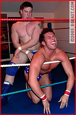A huge clothesline sets up the muscleboy for the Jaxx Hammer: WHAM! 2Fine hits the mat hard! 1... 2... No dice! "I got a better finish for you." But this time 2Fine counters into a ripping spladle! Suddenly 1-to-1, Jaxx proposes an endgame to their reignited rivalry: "Let's take it to the mats one more time," the battlefield that brought him victory back in high school. Neither grappler can stomach the thought of losing. They attack, counter and reverse with impassioned skill. The body-twisting climax is out of the blue: the victor demands a full and ego-crushing submission from the loser. Though triumphant, the winner remembers good sportsmanship. A hug, a kind word and two dual arms raised in a show of respect: Grudge over? With no ref, who says over is over? The "loser" rewrites the rules hitting two picture-perfect high-impact finishers. But why resolve a conflict when you can end it permanently? Draping the limp muscleboy over his shoulders, Jaxx hits an cyclone slam that takes 2Fine from all but out to out cold! And from the long, lingering views of 2Fine lying inert on the mats to his agonizingly slow, wincing, balls-cupping exit, the impact of an ass-kicking has never been so obvious. Brutal!