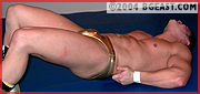 Back-brutality abounds in this match--bodyslams, backbreakers and bow 'n arrows should force a submission, but bigger, stronger and a now more ring-savvy Kieran swears, "Fuck no!" bringing out the beast in his barrel-chested abuser. And Jerry jolts Keiran with with a neck-cranking choke-lift from a front chancery which has Kieran's bubble butt floating in the air. He bounces the hapless pretty boy down across his knee and suspends him there, stretching him and rocking him in a see-saw backbreaker. He easily crotch-lifts and body slams his quarry leaving Kieran arching his back up off the mat in exquisite agony. And being the same height but with a decisive 20 lb, weight advantage, his bearhugs slowly but ever so resolutely weaken Kieran until he is limp in Jerry's arms. And still the punishment continues until Kieran is grovelling on the mat, his muscleboy bod in chiselled high relief, his metallic gold bikini wedged up his bubble butt...