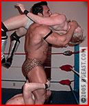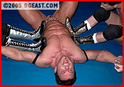Paul accepts The Animal's challenge but after witnessing Cameron's calamitous outing, it's no wonder Paul's a little reluctant to step through those ropes! J-Rock beats the lightweight pro a mile into the air and nearly out of the ring. The punishment continues for prettyboy Paul with a power-press slam, as he finds himself on the receiving end of J-Rock's back-bashing bonanza, highlighted by a series of devastating over-the knee backbreakers. Add in one of J-Rock's patented torture racks, and Paul soon finds himself joining Cameron in a clump outside the ring. But just when it appears that J-Rock's work here is done, Cameron issues a two-on-one challenge that J-Rock clearly delights in accepting. And the teen wonders initially rock J-Rock's world. But when they miss their finisher, J-Rock's prompt punishing payback is a real bitch! ...leaving the tortured teens pummeled and piledriven in a world of hurt and a pile of pain in the middle of the ring!