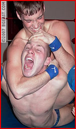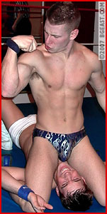 Needless to say, Aryx? ego doesn?t take this sitting down?and of course, blames the ref?who doesn?t back down from the cocky stud?s verbal abuse. The Boss hired him to do a job?and he?s no fool?he knows you obey The Boss! But Aryx isn?t about to let some ref stop him from abusing and defeating Cameron?he just has to be a little sneakier about it than usual! The second fall goes to the cocky Aryx?following some short-cuts of dubious legality AND a very questionable shot between the legs!