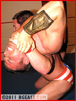 Braden rebounds in the shortest round in the match and shows off the benefits of hard muscle. He hoists Drake up on his shoulders for the torture rack, which in less than a minute has Donnie yelping for mercy. But then Donnie's furious reprisal makes the final fall the most complicated and grueling of all. No longer concentrating on just his opponent's chest, Drake applies the most vicious holds at his disposal - among them, the camel clutch (with face clawing on top of every other agony of the hold), the Boston crab, naked strangulation, and, wait for it... the piledriver! And he won't stop at submission.