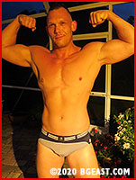 "Are you gonna stand there? Or are you gonna come to the mat like the man you pretend to be, and face me?" Ethan Axel Andrews issues this cocky invitation to initiate a very private showdown. Brendan Byers looks gigantic next to Ethan, which is saying a lot since Ethan is not small. At all. Brendan mocks Ethan's modest musculature ("modest" compared to Brendan's beef). Brendan thinks ... no, he outright says that beating Andrews on the mat is going to be a "cakewalk." Brendan may want to curb his attitude because even though he cut his teeth at BG East, his earliest matches were ring matches, not mat matches like this one, and he was something of a bitch-boy for BGE legends like Joe Mazetti and Brooklyn Bodywrecker. Of course, all that was before Brendan famously transformed himself into the muscle-brute he is today, and started his "let them eat 'cake" reign.