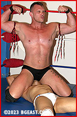 Since his return to the Arena - bigger, stronger and meaner - Brendan Byers has always aimed to join the ranks of the Dark Knights of BGEast: wrestlers who combine their exceptional skills and experience with their own mastery of the sexuality of dirty dominance and sensual submission with S&M flair. He has come a long way from the slimly built fresh-faced youngster victimized by his older and more brutal opponents and has been mowing down studs left and right, wanting to earn a shot at becoming one of the Dark Knights in the vein of long time champion Brooklyn Bodywrecker. Impressed by the string of dominant wins, the Boss decided to give Brendan his long-desired audition - with sexy stud Sunny DeLeon as his toy. Is this southern boy ready to totally own his opponents?